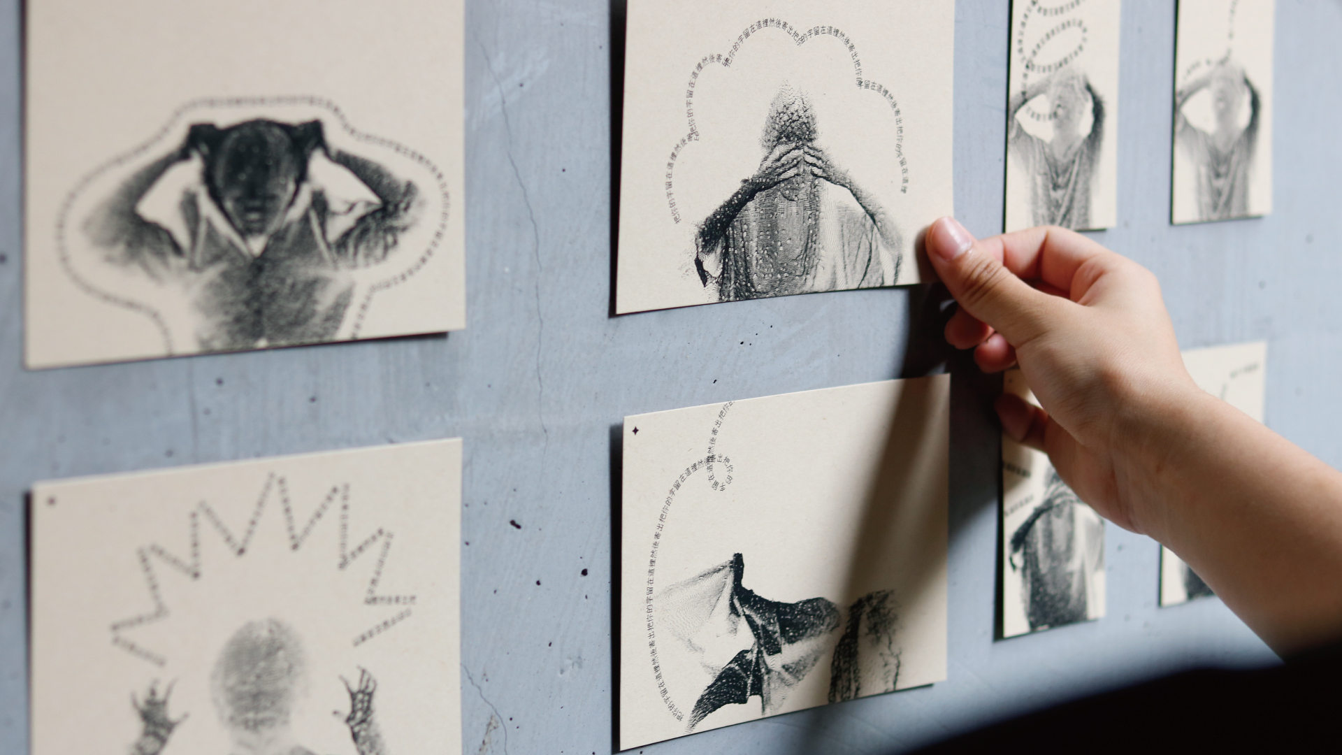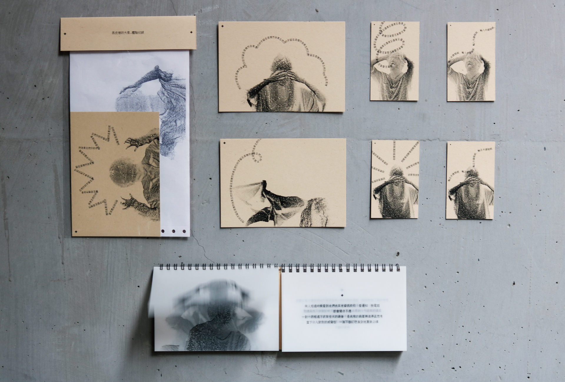 雜碎的日常接踵而來,一片接一片的焦慮隨之堆疊。液態的感受幻化成顆粒狀,在表皮下浮游。全身被填滿後,放眼望去,一切都被碎片覆蓋。到底要怎麼把它驅走,你說說話吧?